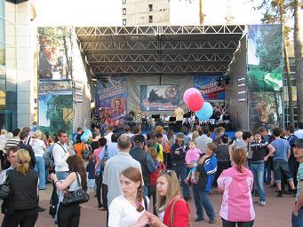 Компанией Koloskoff Group - была установлена усиленная сцена 8х6 с подвесом звука.